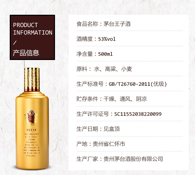 | 生産廠家: 貴州茅台酒股份有限公司 |
