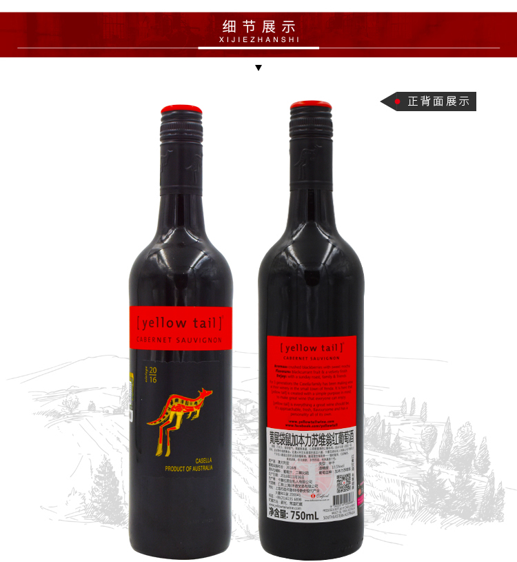 黃尾袋鼠加本力蘇維翁紅葡萄酒 澳洲原瓶進(jìn)口