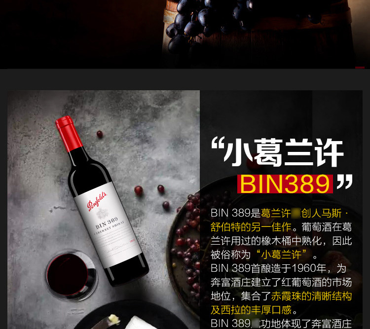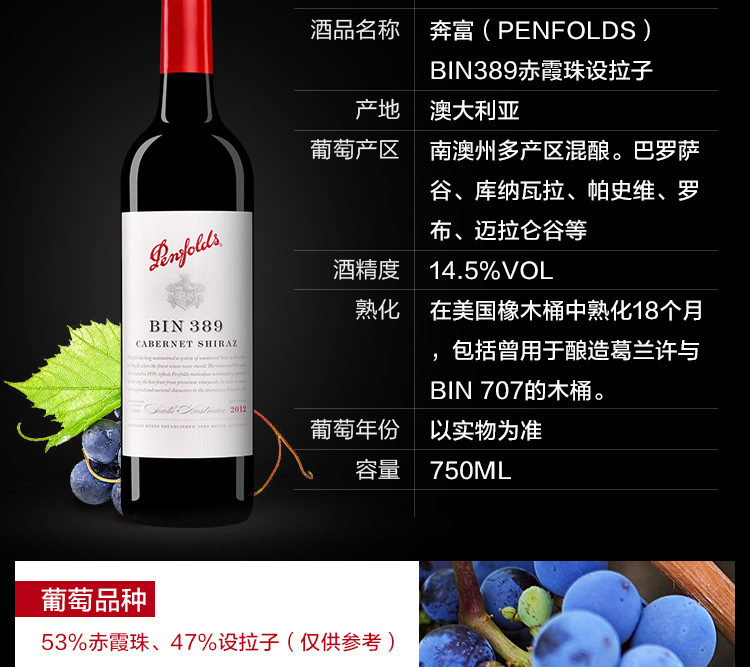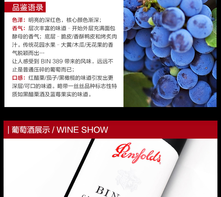 澳大利亞進(jìn)口奔富BIN389幹紅葡萄酒