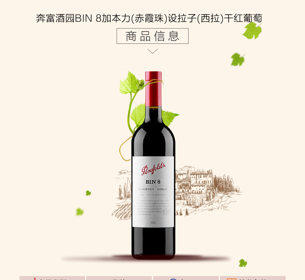 澳大利亞奔富BIN8赤霞珠設拉子幹紅葡萄酒