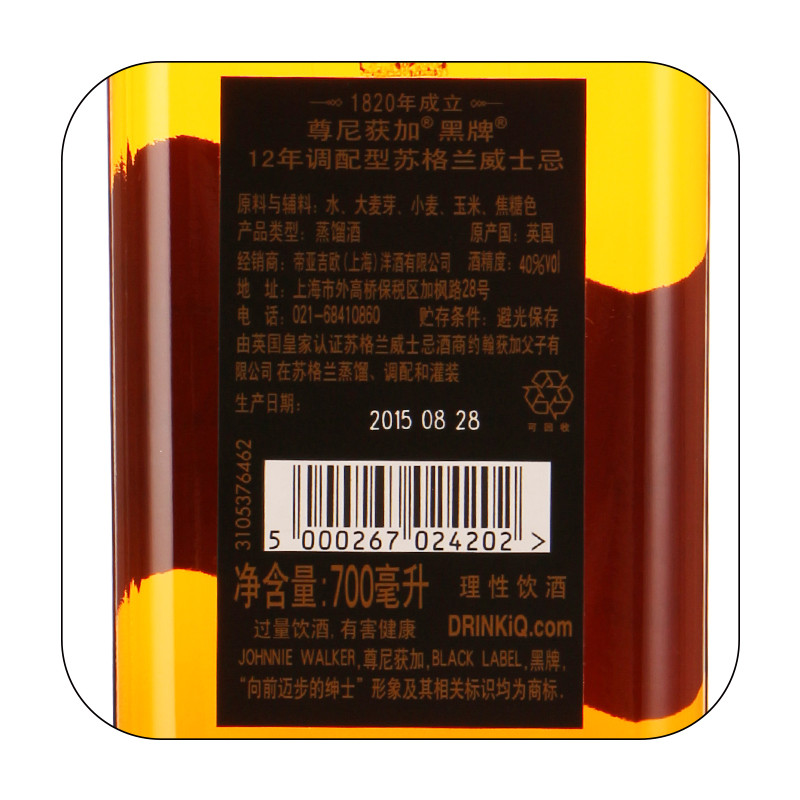 尊尼獲加黑牌 蘇格蘭威士忌 進(jìn)口洋酒【無盒】