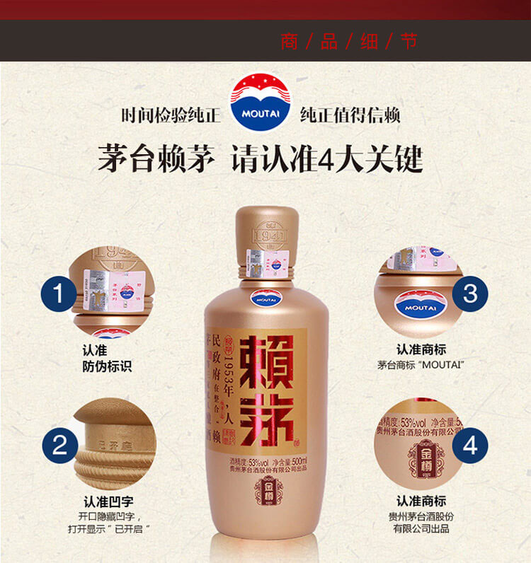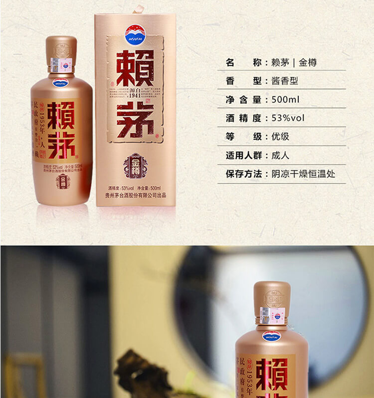 品名: :賴茅 金樽 原料與配表:水、高粱、小麥
