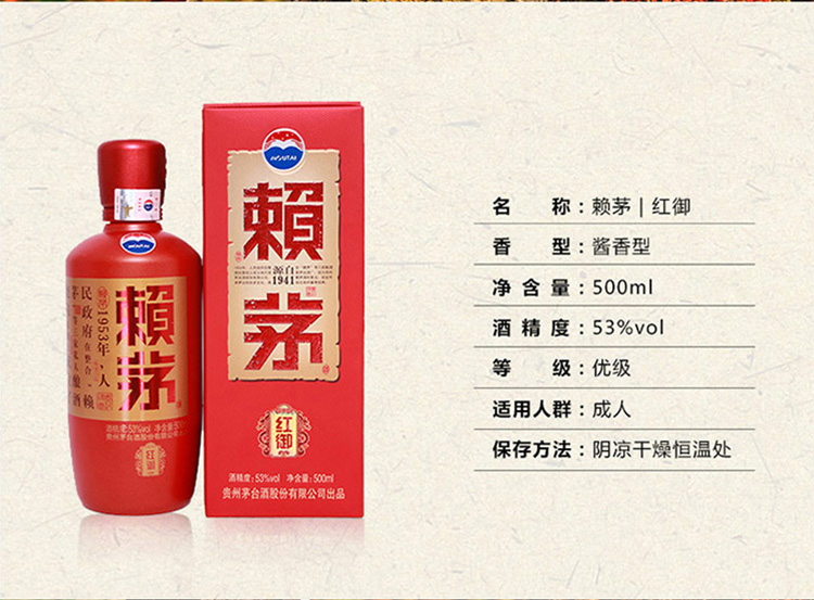 品名: :賴茅紅禦 原料與配表:水、高粱、小麥