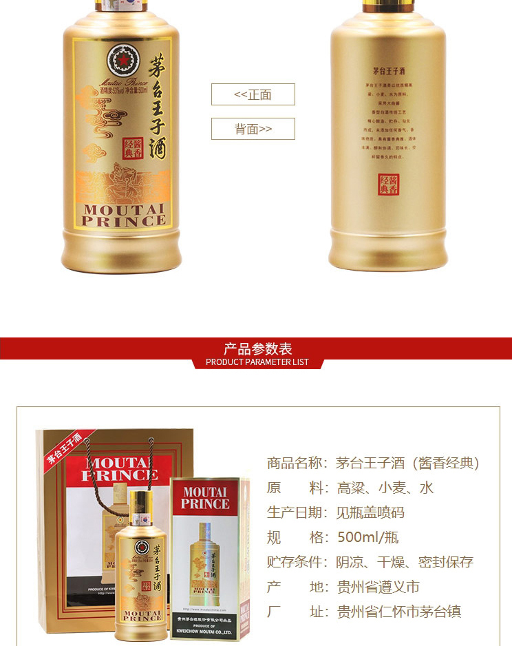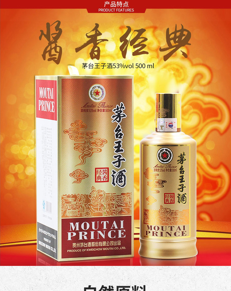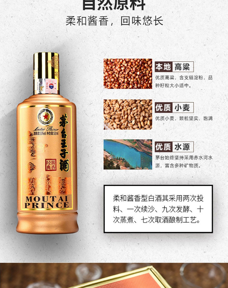 品名: :茅台王子酒 醬香經(jīng)典 原料與配表:水、高粱、小麥